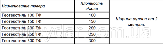 Полотно білого кольору, намотується в щільні рулони, упаковується в п/е плівку, під плівку на кожен рулон поміщається пакувальний листочок з зазначенням виробника, номера партії, щільності, кількості метрів у рулоні. |
